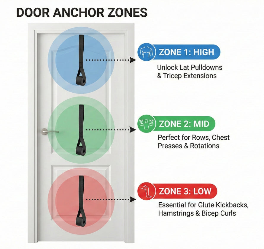 Engineered with reinforced stitching and a durable foam anchor to protect your door while providing a strong, reliable hold during every workout.